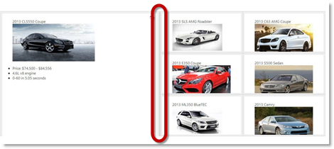 | Two-panel layout | The igSplitter control provides two-panel layout for igTileManager – one for the maximized (selected) tile and one for the minimized ones. ![]() |