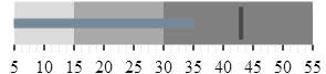 For this example, configure 3 comparative ranges, each of a different shade of gray, starting at the 0, 15, and 30 tick marks of the scale, respectively.