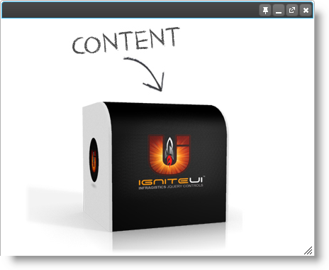 The following image shows the igDialog, which has an image as content. The control is in an open state.