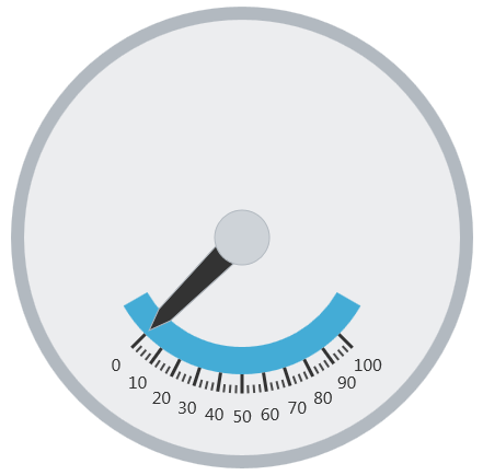 Used to represent the values of the gauge visually, a scale defines a range of values in the igRadialGauge control. The tick marks and ranges are all the elements that can be added to a scale.