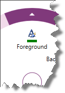 The igRadialMenu’s color well displays the associated color in both the item area and the outer ring. When the user navigates to the sub-items of a color well, the parent color well and its siblings are displayed between the center button and the items area.