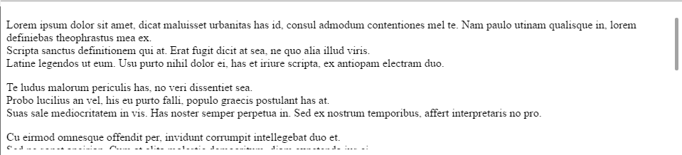 Next, create a simple scrollable area. For this example we'll create a simple div DOM element with some long text inside to allow scrolling.