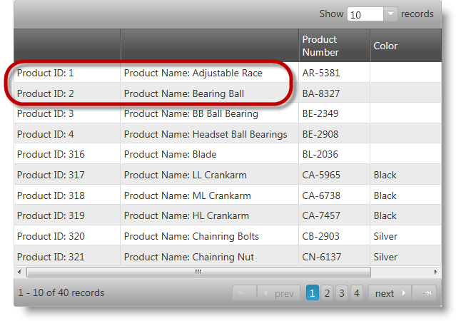 The grid editing functionality has been improved to report only net transactions from the grid control when data is updated, added or deleted. That means transactions which mutually cancel each other will not be reported and the client applications will get only the effective changes on the underlying data. For example. If a row is added and then deleted neither insert, nor delete transaction will be reported. On the picture below you can see a grid with an updated and deleted row.