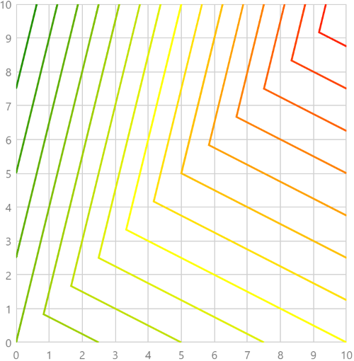 This type of series is useful for rendering heat maps, magnetic field strength or wifi strength in an office. The Scatter Contour Series works a lot like the Scatter Area Series except that it represents data as contour lines colored using a fill scale and the scatter area series represents data as a surface interpolated using a color scale.
