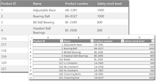 Indicates whether excel table styles will be the same as grid styles. This is set to applied by default. Custom grid themes are not supported.