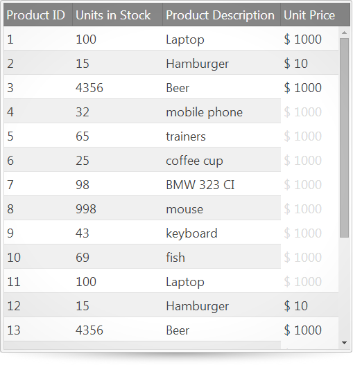 { headerText: "Unit Price", key: "UnitPrice", dataType: "string", width: 150 }