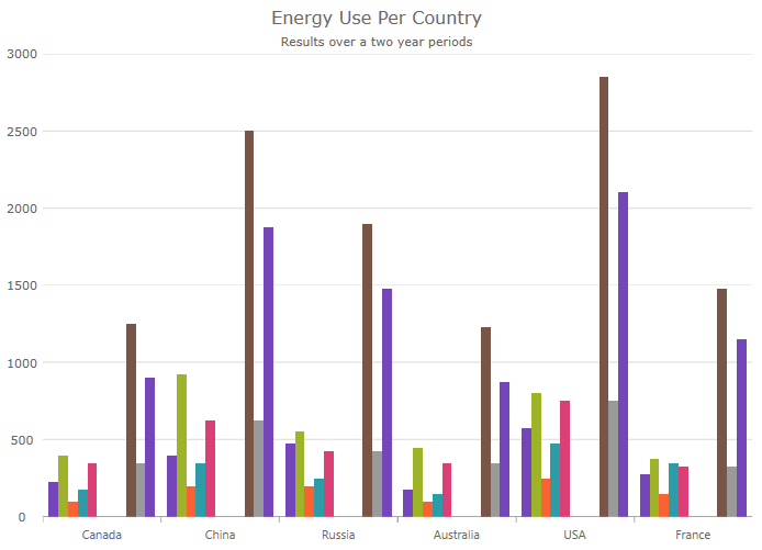The igCategoryChart is a lightweight, highly performant chart. This chart can be easily configured to display category data using an extremely simple and intuitive API. All you need to do is bind your data (a collection or a collection of collections) and the chart takes care of everything else.