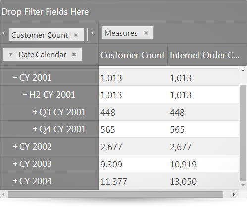 measures: "[Measures].[Customer Count], [Measures].[Internet Order Count]"