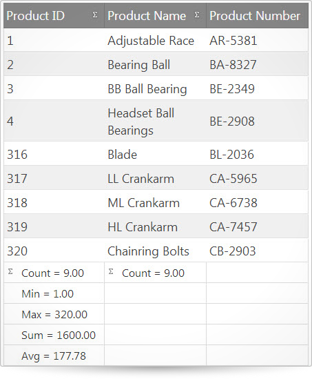 { columnKey: "ProductNumber", allowSummaries: false }