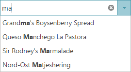 | Highlighting | When a user type a text in igCombo input the matching results in the dropdown items are displayed with a visual highlighting of the matching text. |