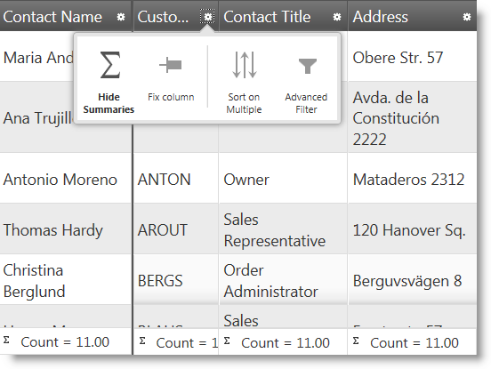 igGrid’s Column Fixing feature – setting columns fixed by default and preventing columns from being fixed by the user.View on GitHub