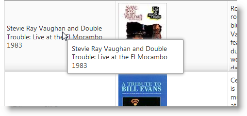 In this example, the tooltips are configured to display over every column that contains text and not over the columns that store images.