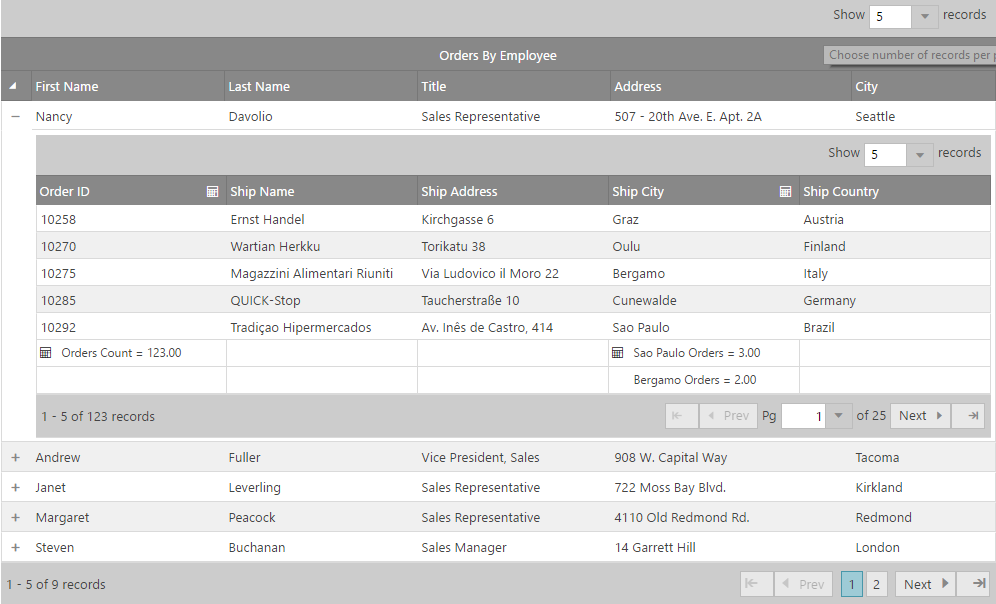 This topic demonstrates how to initialize the igHierarchicalGrid™ in both jQuery and MVC.