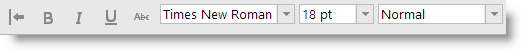 The text toolbar contains buttons and drop-downs for formatting text at the character level.