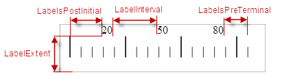 Extents configuring the major tick marks along the scale Extents configuring the major tick marks across the scale