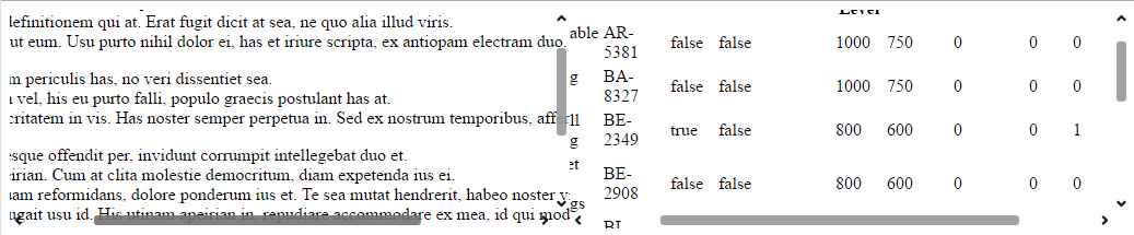 With this both containers will have synced scrolling. If one is scrolled the other will also be scrolled with the same amount and in the same direction.