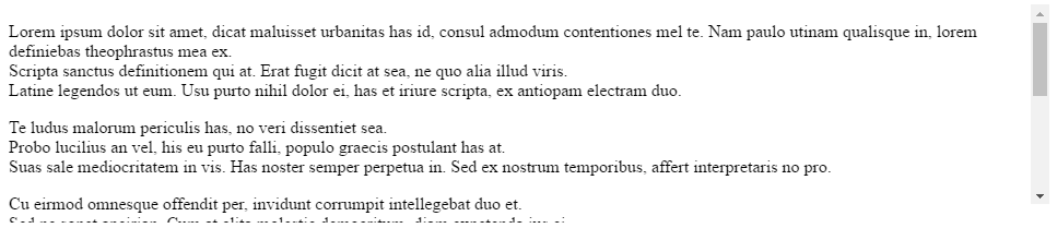 Next, create a simple scrollable area. For this example we'll create a simple div DOM element with some long text inside to allow scrolling.
