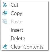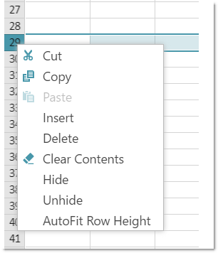 The igSpreadsheet control provides a context menu, which is opened by right clicking on the control elements. The context menu allows the user to perform different operations depending on the elements on which the right click is performed.