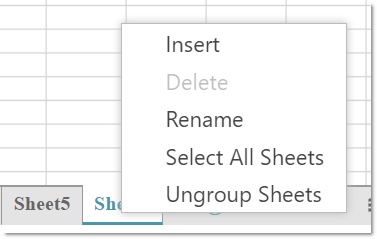 The following screenshot shows the worksheets tab bar area context menu when several worksheets are selected:
