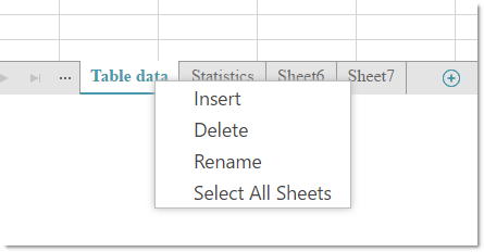 The following screenshot shows the worksheets tab bar area context menu when one worksheet is selected: