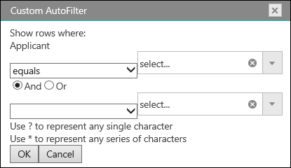 This topic explains what operations can be performed by the user with the control’s filter dialog to create or modify complex filters in a column.