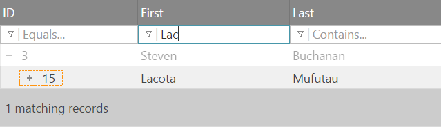 Furthermore, filtering causes collapsed hierarchies to expand and reveal matches, but will properly restore their expansion state once filters are cleared. Changes to the expansion state made while the records are filtered will override the persisted expansion state.