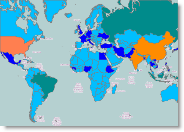 The following picture shows a geographic shapes series map with some custom colors applied.