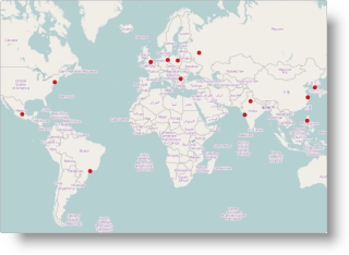 This example shows how to configure custom fill and outline color to markers. Markers are plotted in geographic symbol and geographic shapes series. The example is shown in the context of geographic symbol series. The actual colors can be one of the HTML color name constants (e.g. “red”), the rgba syntax (e.g. rgba(100,100,100,0.5)) or hexadecimal color codes (e.g. “#347235”).